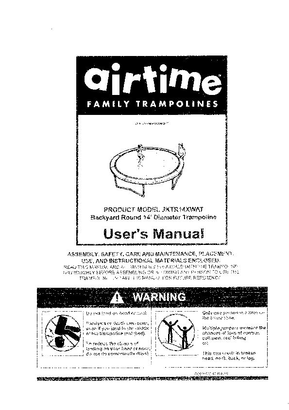 Home | TRAMPOLINE PARTS - Our Specialty | Trampoline Manuals | JumpKing | JumpKing Trampoline & Combo Manuals | 14' JUMPKING Model JKTR14XWAT Manual